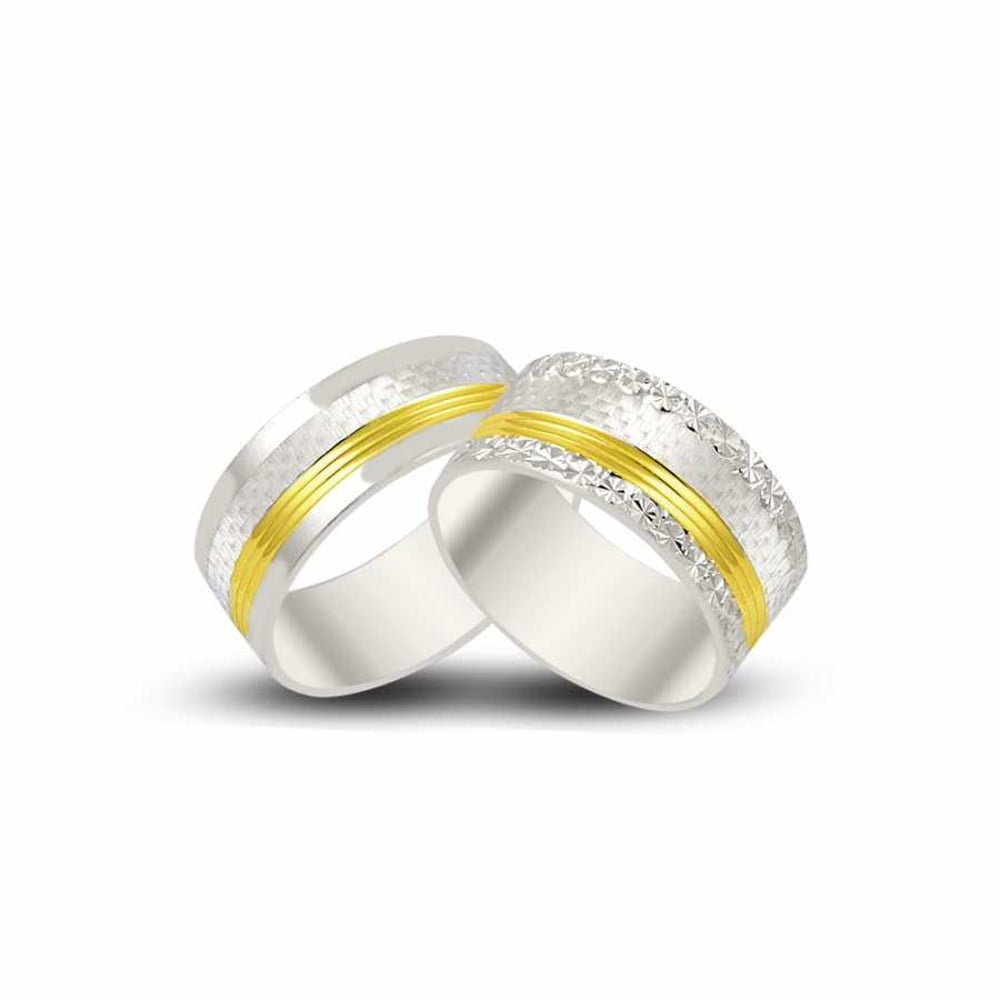 925 Ayar Gümüş Çift Renk Desenli Sade Alyans