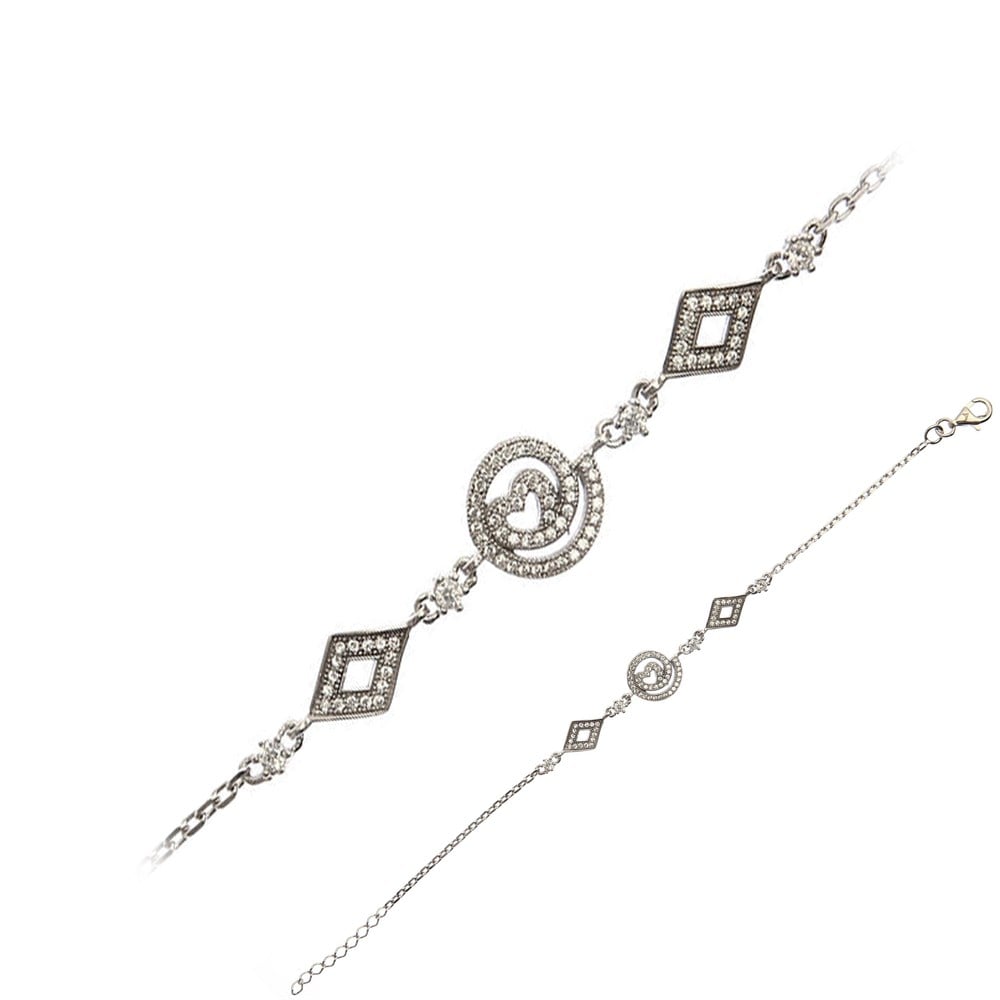 925 Ayar Gümüş Kalp Detaylı Karo Bayan Bileklik