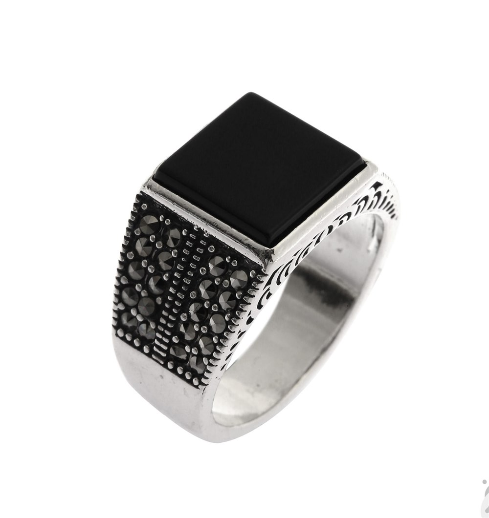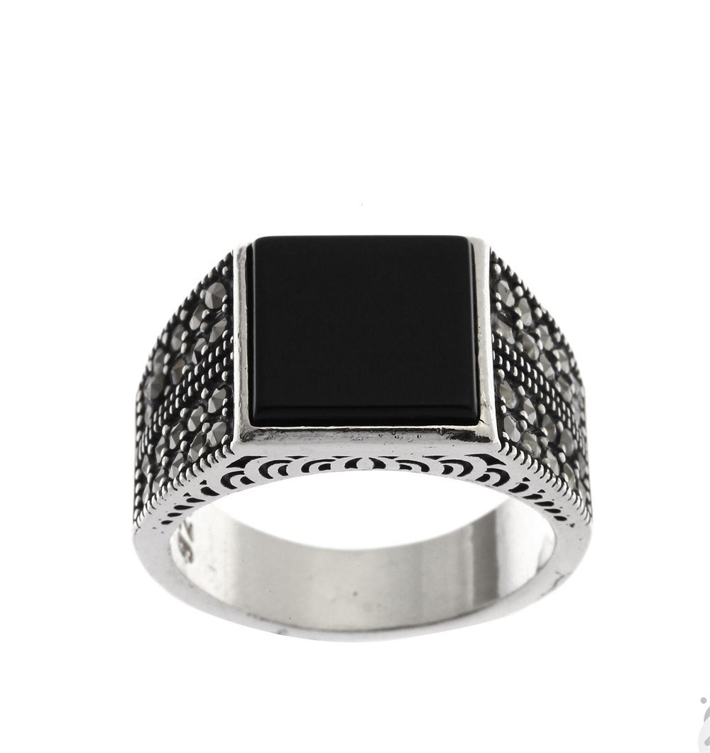 1.Sınıf İşçilik Kare Oniks ve Margazit Taşlı Yüzük. En