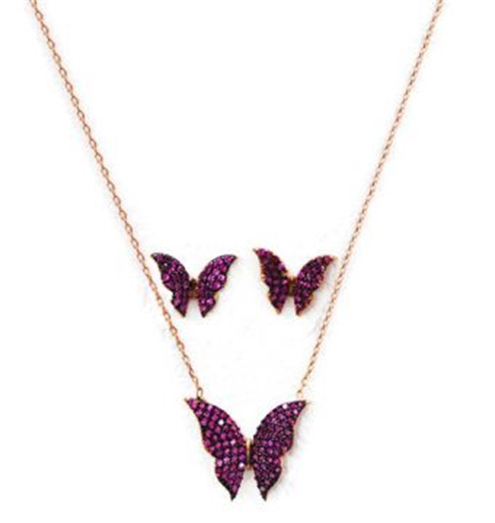 Gümüş Nano Taşlı Kelebek Set