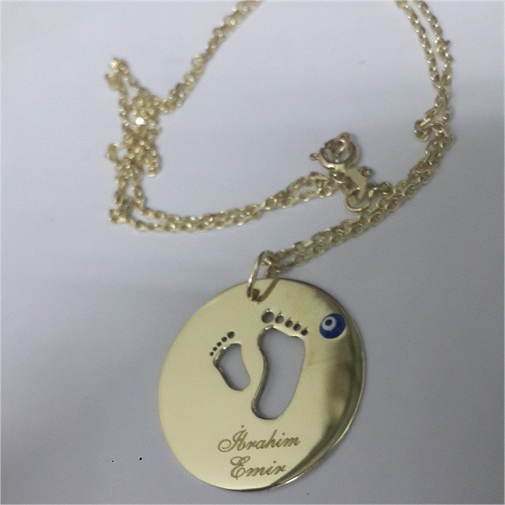 Eşinize,sevdiklerinize en güzel hediye ayak izi kolye. Çocuğunuzun ismi,eşinizin ismi aynı kolye içerisinde.