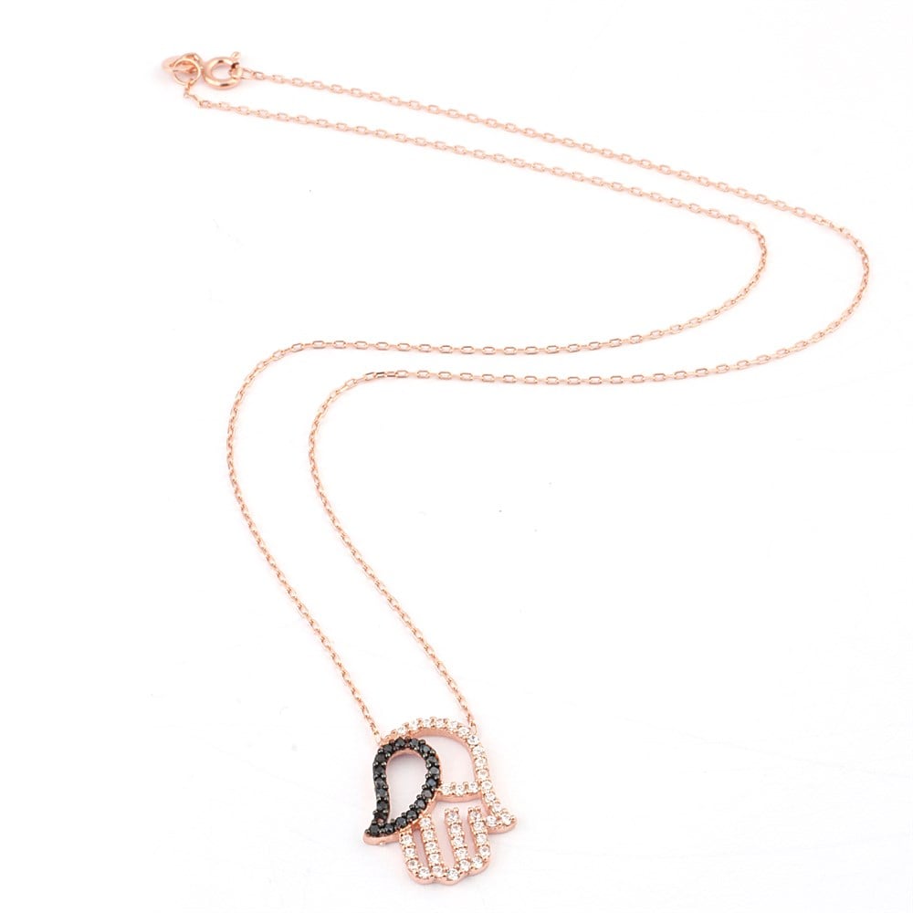 925 Ayar Gümüş Rose Kaplama Fatma'nın Eli Kolyesi