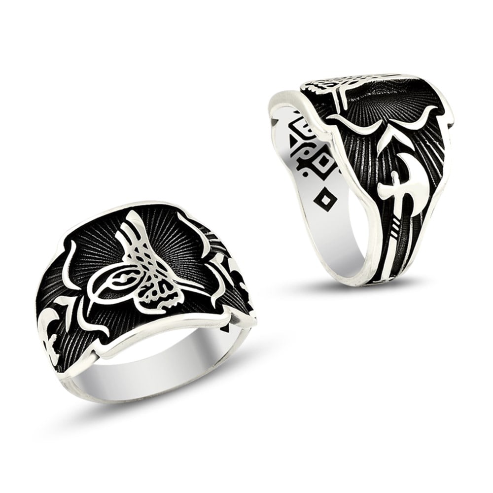 925 Ayar Gümüş Tuğralı Balta Desenli Yüzük