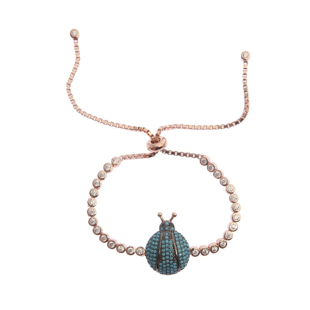 925 Ayar Gümüş Turkuaz Taşlı Rose Uğur Böceği Bileklik