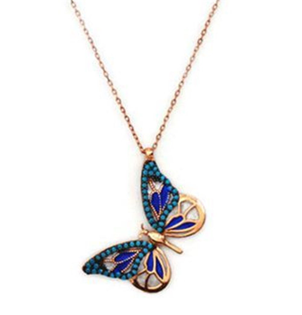 1.Sınıf İşçilik Turkuaz Taşlı Zarif Kelebek Kolye. En
